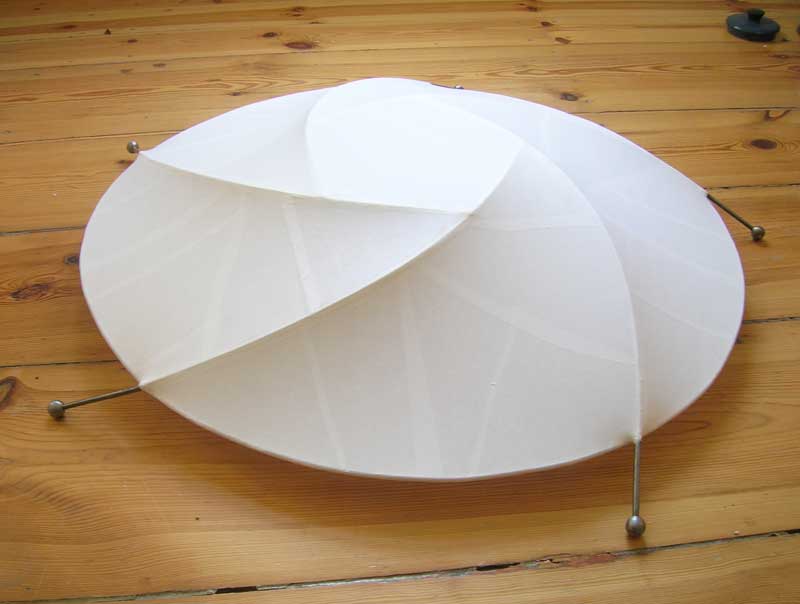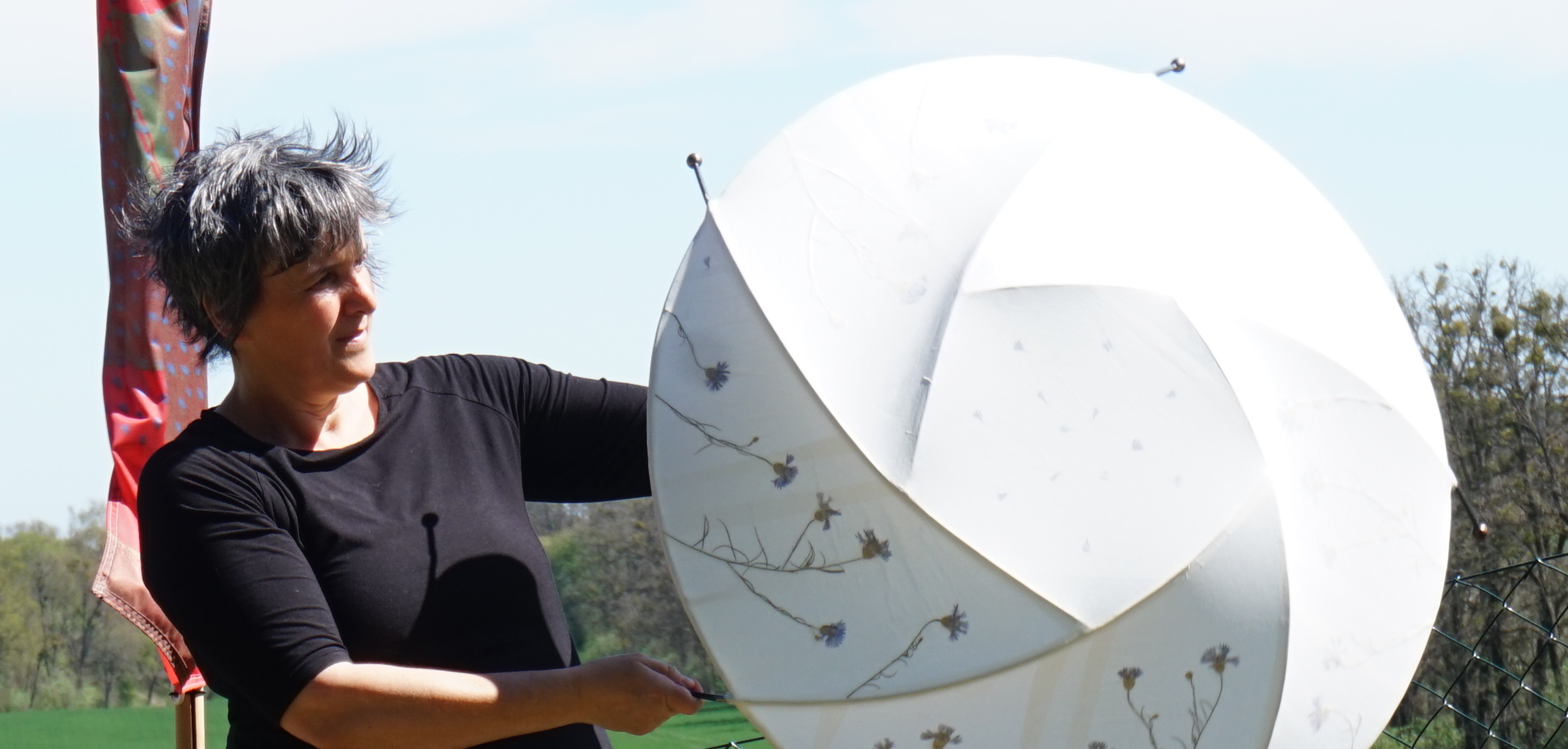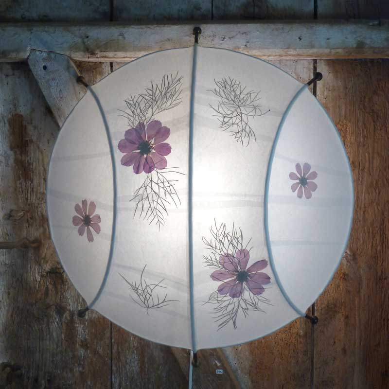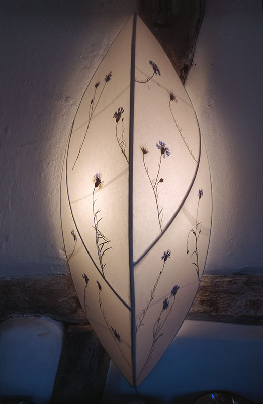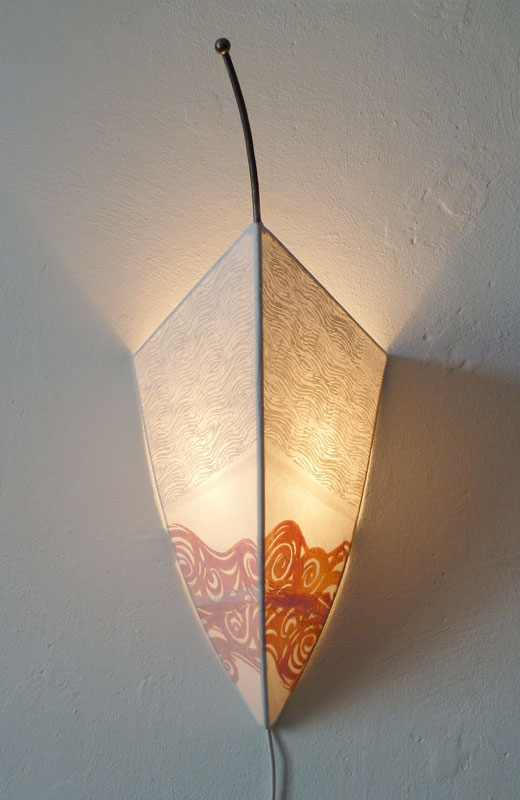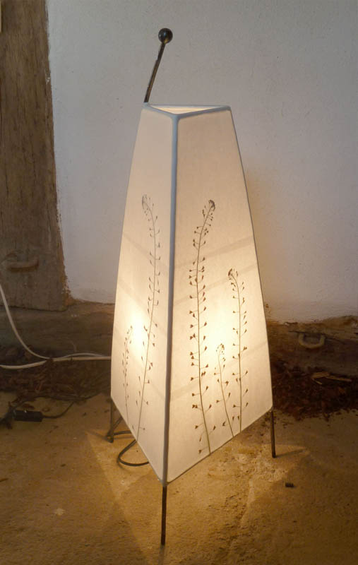 Ich baue Leuchten aus Stahl und collagiertem Seidenpapier.